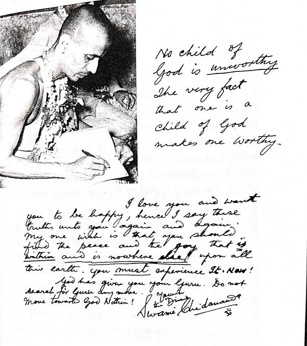 प्रिय आत्मन् बिल ! आप भली-भाँति जान लें कि गुरुदेव की कृपा आप पर प्रचुर मात्रा में है। अपने मन्त्र जप का अभ्यास भी करते रहें, हर प्रकार से वही आपका एक मात्र संरक्षक है। यह आपके आध्यात्मिक पथ को प्रकाशित करता है। आत्म-साक्षात्कार की आन्तरिक ऊर्ध्वारोहण की यात्रा में मेरी हार्दिक प्रार्थनाएँ आपको बल देती रहें। ईश्वर सदा सर्वदा आपके साथ हैं। आपके प्रिय निकटतम परिजन जिनके आत्मोत्थान के लिए भगवान् ने आपको कुछ समय के लिए धरती पर भेजा है, उन सबको मेरे प्रेम भाव, आदर तथा अनेकानेक मंगलकामनाओं सहित पत्र लेखन समाप्त करता हूँ। ॐ नमः शिवाय।।"