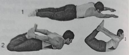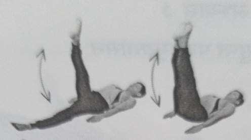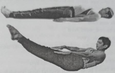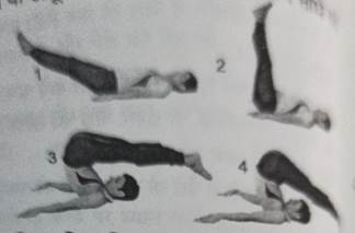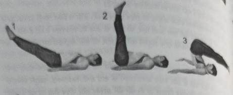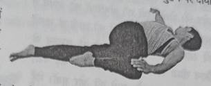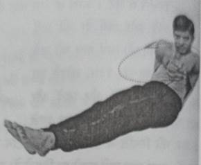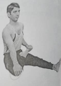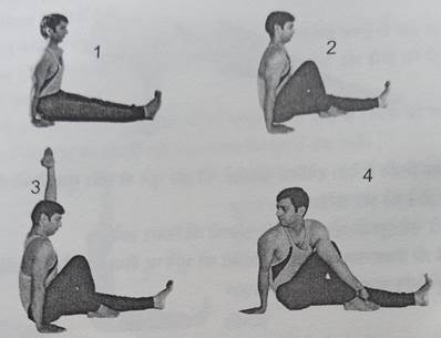 दायें घुटने को मोड़ें। अपनी अंगुलियों को दायीं जांघ के नीचे आपस में जकड़ लें। पैर के अंगूठों को आगे की ओर रखते हुए, घुटने की कपाली (केप) को खींचते हुए टांग सीधी करें। एड़ी भूमि पर न लगे। अब पैर के अंगूठों को ऊपर की दिशा में रखते हुए दायें टखने एवं दायें घुटने को मोड़ें ताकि जांघ छाती के निकट हो और एड़ी नितम्ब के निकट हो। सिर और मेरुदण्ड सीधे रहे। यह एक आवृत्ति है। 5 से 10 बार दोहरायें। बायीं टांग से यही क्रिया करें और फिर दोनों टांगों के साथ करें। यह कठिन अभ्यास है। ऐसे व्यक्ति न करें जिन्हें पीठ या पेट की समस्या, अथवा उच्च रक्तचाप या हृदय रोग हो।