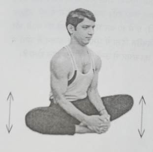 ऊपर दर्शायी गयी स्थिति में बैठें। ध्यान को पैर के अंगूठों में केन्द्रित करें। धीरे - धीरे उन्हें आगे पीछे मोड़े। हर बार की स्थिति में कुछ सैकण्ड रूकें । इस अभ्यास को 10 बार दोहरायें।