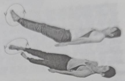 2. दोनों पैरों को जोड़ें और 10 बार घड़ी की सुईयों की दिशा में सीधे, 10 बार विपरीत दिशा में