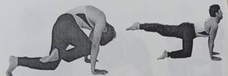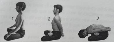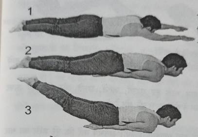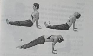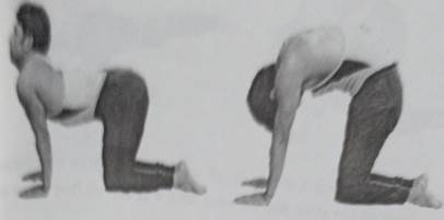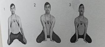 3. श्वास छोड़ें, आगे झुकें तथा सिर को भूमि पर लगाये। श्वास भरते हुए सिर गर्दन आदि ऊपर उठायें और शुरू वाली स्थिति में लौटें।