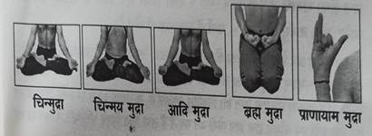 चिन्मय मुद्रा, आदि मुद्रा, ब्रह्म मुद्रा और प्राणायाम मुद्रा या विष्णु मुद्रा ।