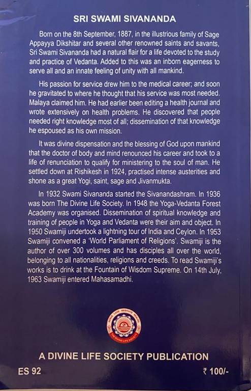 The Divine Life Society, Shivanandanagar, and printed by him at the Yoga-Vedanta Forest Academy Press,