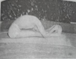 तह किये हुए कम्बल पर बैठ जायें। दायें पैर को बायीं जंघा पर और बायें पैर को दायीं जंघा पर रख कर पैरों की कैंची बना लें। इसे दूसरे शब्दों में कहें तो पद्मासन धारण कर लें। शिर तथा मेरुदण्ड को सीधा रखते हुए हाथों को पीछे ले जायें और धड़ के पीछे बायें हाथ से दाहिनी कलाई को पकड़ लें। निःश्वास छोड़ें और आगे की ओर धीरे-धीरे इतना झुकें कि मस्तक भूमि को स्पर्श करे। अन्तःश्वसन के बिना अथवा सामान्य श्वसन के साथ (जो आपको सुखद लगे) प्रारम्भ में दश सेकण्ड तक इस आसन में रहें। मस्तक, उदर तथा पृष्ठभाग की मांसपेशियों पर चित्त एकाग्र करें। तत्पश्चात् बैठने की सीधी स्थिति में धीरे-धीरे वापस जायें और हाथों को खोल दें। सामान्य श्वास-प्रश्वास के साथ कालावधि को पाँच से छह मिनट तक शनैः-शनैः बढ़ायें।