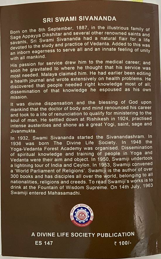 Published by Swami Padmanabhananda for The Divine Life Society, Shivanandanagar, and printed by him at the Yoga-Vedanta Forest Academy Press,