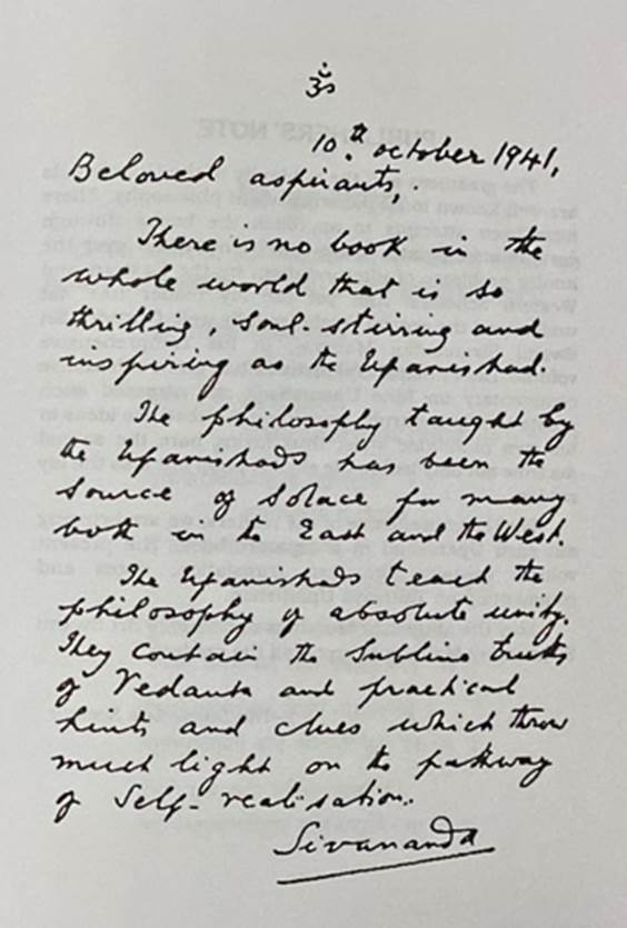 The greatness and the sublimity of the Upanishads are well known to all the students of philosophy. There have been attempts to approach the books through various standpoints. Much has been written over the knotty problems of interpretation, by the Eastern and Western scholars. And yet the lay reader has not understood the central teachings fully well. Gurudev Sri Swami Sivanandaji Maharaj, in his comprehensive volume The Principal Upanishads' has given exhaustive commentary on Nine Upanishads and stressed such points clearly and truly, explaining the abstruse ideas in his own inimitable style, thus laying bare the sacred doctrine not only before the eligible pupil but also the lay reader.
