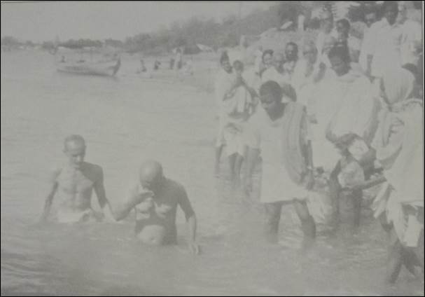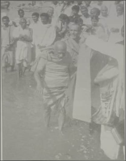 Sometime in 1943 Subbaraya took up Government service at Hospet. But this phase lasted only for a short period. He went to sacred city of Varanasi. There he studied the Vedas and Sanskrit for a little while. But the call to seclusion and Sadhana drew him further from Varanasi to Hard- war and to Rishikesh. Arriving at Rishikesh in the year 1944 the brilliant young seeker came face to face with his Guru Swami Sivananda upon the holy banks of the sacred river Ganga.