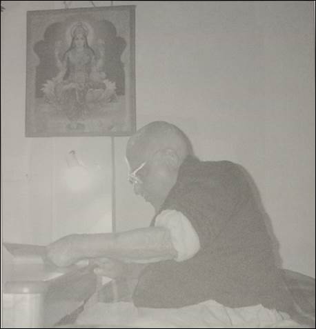 I came to Shivananda Ashram on 5th September 1965 and met my Guru, H.H. Sri Swami Krishnanandaji Maharaj near Bhajan Hall, after his speech on Bhagavad Gita. I took Mantra Diksha (Initiation) from him on 25th April 1966 in Holy Samadhi Mandir. I entered into Sannyasa order on 12th June 1975 in Sri Gurudev Kutir.